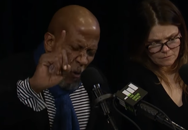 Reg E. Cathey performs the role of Ajax in Doerries’ Theater of War. Source: screenshot from The Greene Space YouTube video