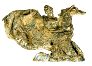 Late Classical Greek Terracotta relief of a Nereid carrying a cuirass, or breastplate, forged by Hephaistos for Achilles, 350–300 BCE from Southern Italy.