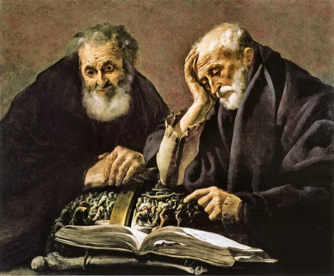 Pre-Socratic philosophers Democritus and Heraclitus depicted by Hendrick Terbrugghen (1588-1629). Source: CC0 via Wikimedia Commons