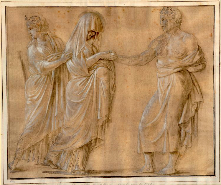 Drawing of the Wedding of Peleus and Thetis by an unknown Artist, ca. 1588-1657, from the collections of Cassiano dal Pozzo (1588 – 1657), reproducing the relief of a terracotta slab from the Roman period, of Campania origin, belonging to the Farnese family and today is in the Louvre (inv. CP 4712). CC0 via Wikimedia Commons