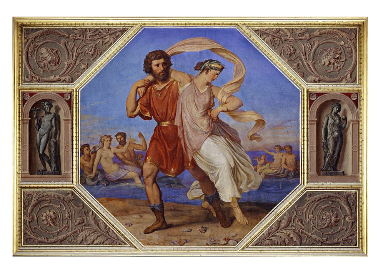 Peleus Abducts Thetis. 19th.century. August Theodor Kaselowsky. German 1810-1900. mural Neues Museum. CC0 via Wikimedia Commons