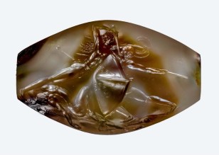 A tiny sealstone from the tomb of the Griffin Warrior found by UC archaeologists Davis and Stocker depicts mortal combat in exquisite detail. Archaeology Magazine called the sealstone “a Bronze Age masterpiece.” Photo by UC Classics