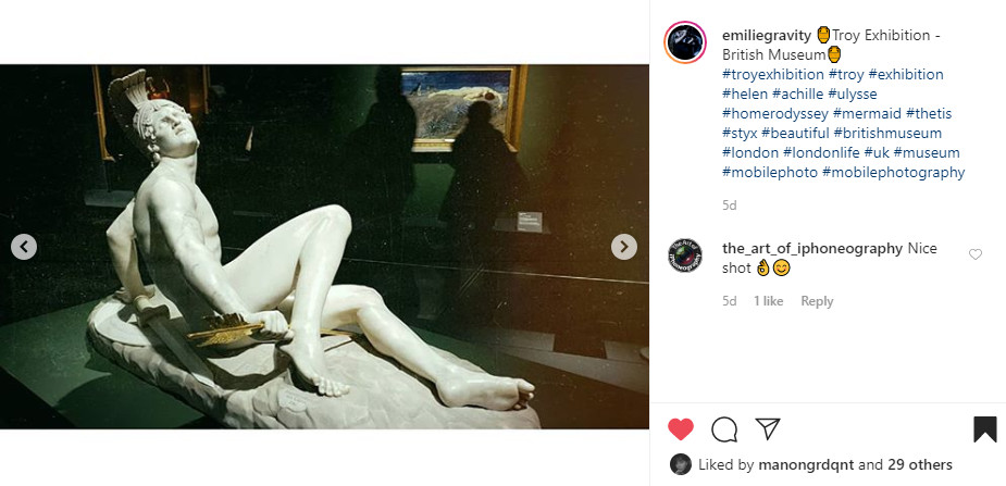 A great photo of Achilles from emiliegravity’s instagram post of #TroyExhibition. (Screenshot) Link to post here.