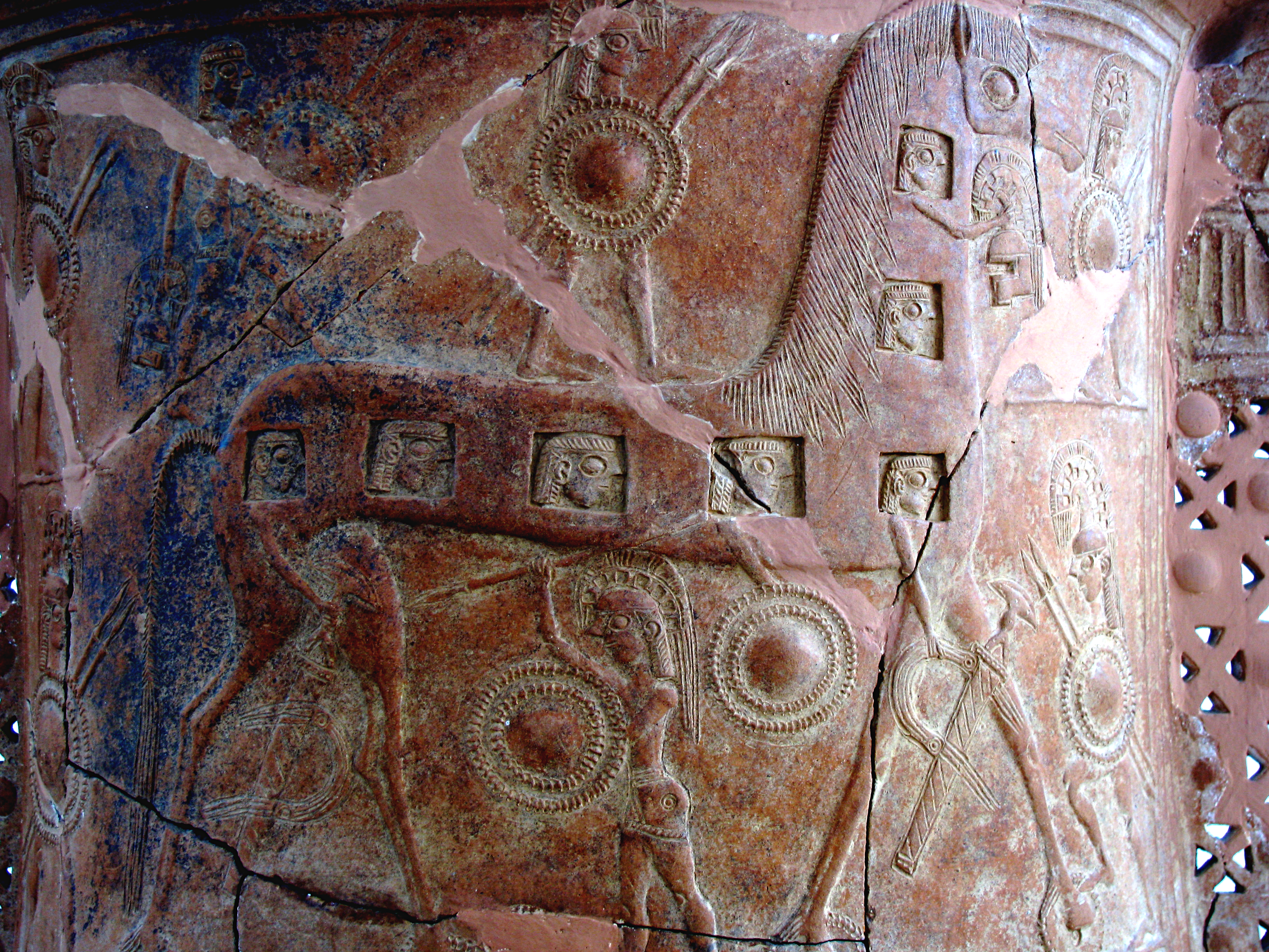 Detail of the Mykonos Pith Amphora, ca. mid 7th century BCE, showing what is thought to be the earliest depiction of the Trojan Horse.