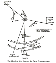 Fig 27., “Star Map Showing Six Chief Constellations” from A. Frederick Collins’ The Book of Stars; Being a simple explanation of the stars and their uses to boy life, written to conform to the tests of the Boy scouts” (1920, New York, D. Appleton and Co.)