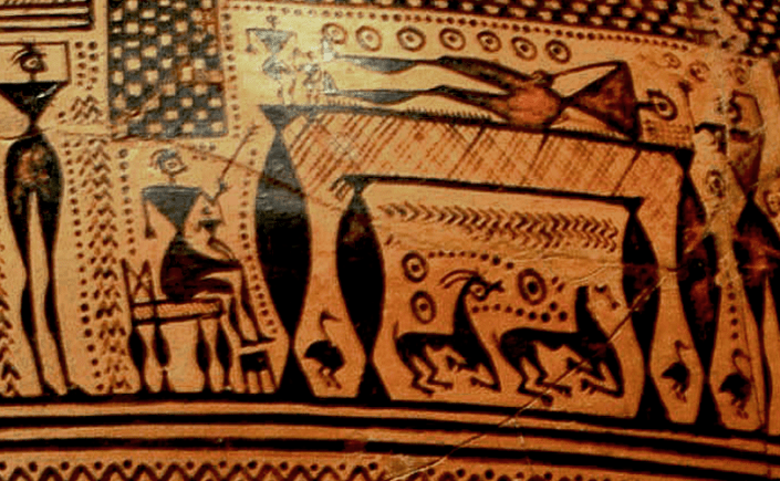 Geometric Terracotta “Hirschfeld” Krater, ca. 750-735 BCE, Depicting a Funeral and Funeral Games. Source: Wikimedia commons